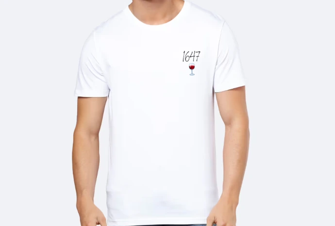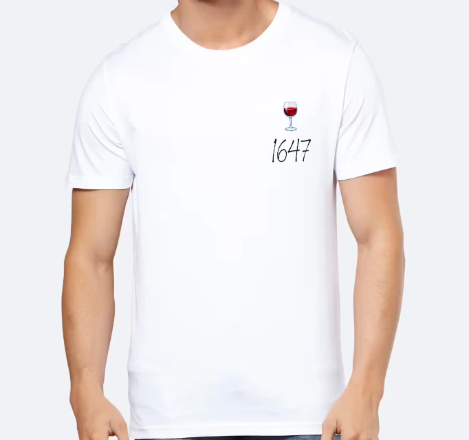Le logo 1647 en noir, accompagné d'un vert de vin rouge, en haut, côté gauche.