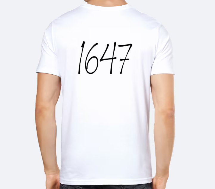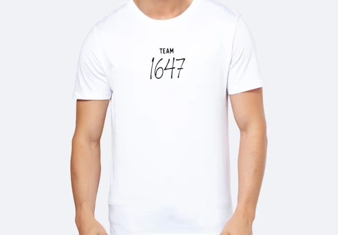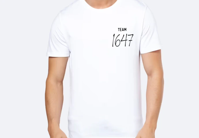 Le logo 1647 en noir, au centre, accompagné du texte "team"