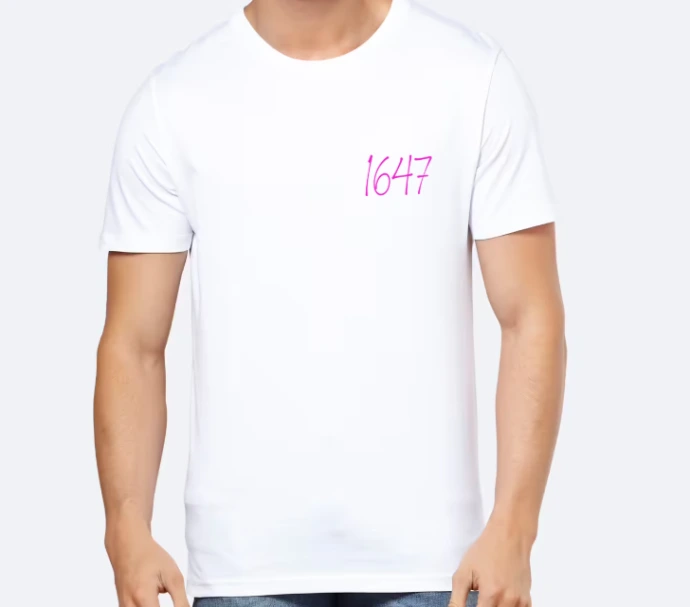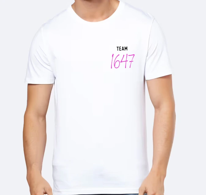 Le logo 1647 en rose, en haut, à gauche, accompagné du texte "team"